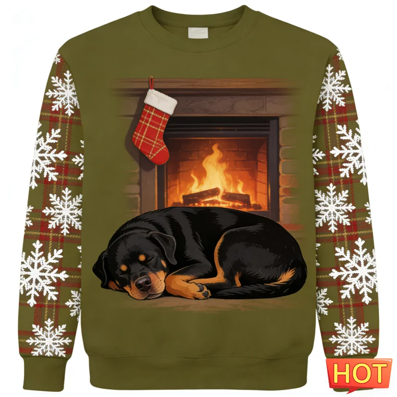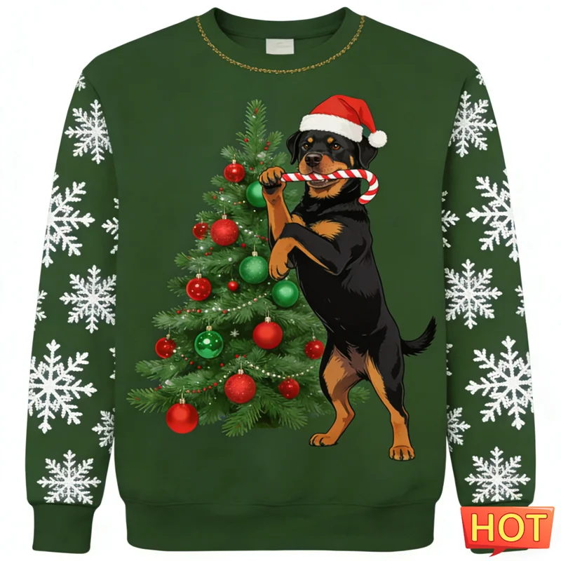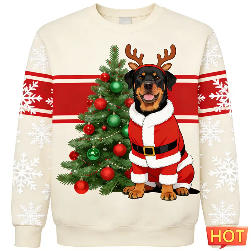 Funny Rottweiler Graphic Ugly Christmas Sweater Fashion Cute Dog 3D Printed Xmas Sweatshirts Loose Breathable Unisex Pullovers